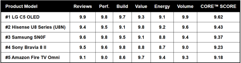 The top-performing 4K TV's in the UK market. Using our proprietary CORE™ System logic, we identify the market leaders at the speed of sight.